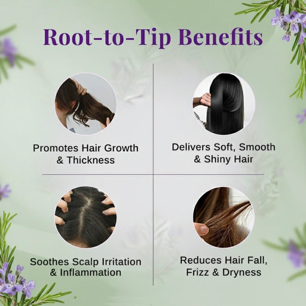 🌿 Stimulates Hair Growth: Rosemary is scientifically recognized for its ability to boost circulation to the scalp, promoting stronger, faster hair growth.